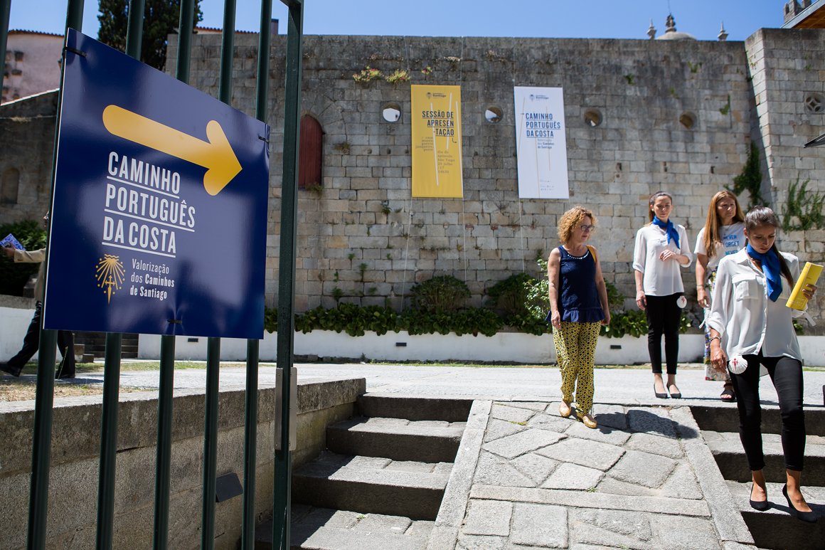 O historiador e peregrino Joel Cleto guiou hoje - Dia de São Tiago - os primeiros passos no Caminho Português da Costa, junto à Sé, logo após este ser apresentado na Casa-Museu Guerra Junqueiro por 10 municípios que, unidos, apresentaram uma candidatura ao programa Norte 2020 para valorização dos Caminhos de Santiago. A candidatura corresponde a um investimento global de 2.153.846 euros, do qual são elegíveis 1.692.940 euros.